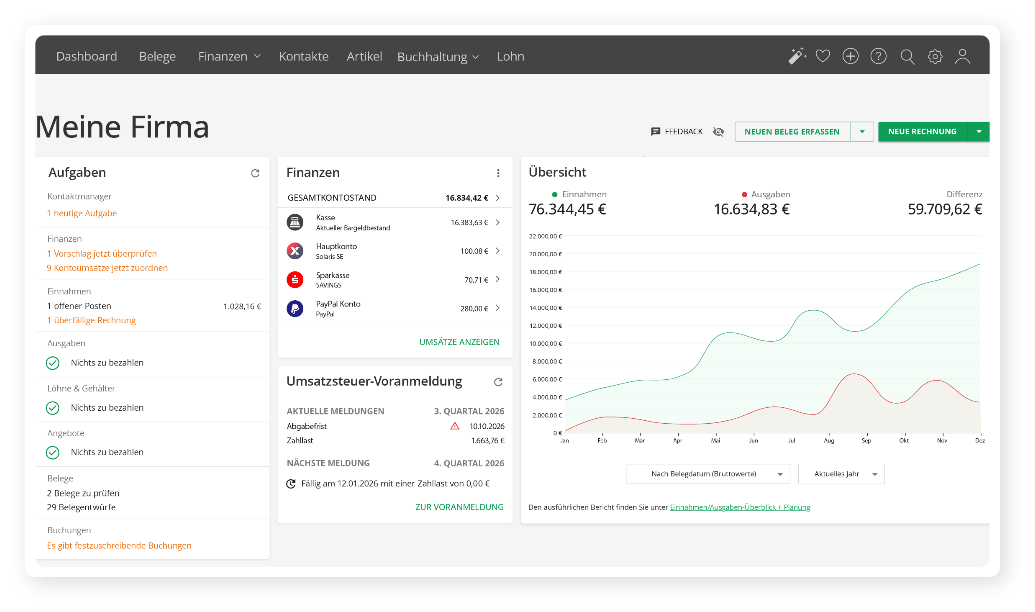 60+ Funktionen wie z.B. Rechnungen schreiben,